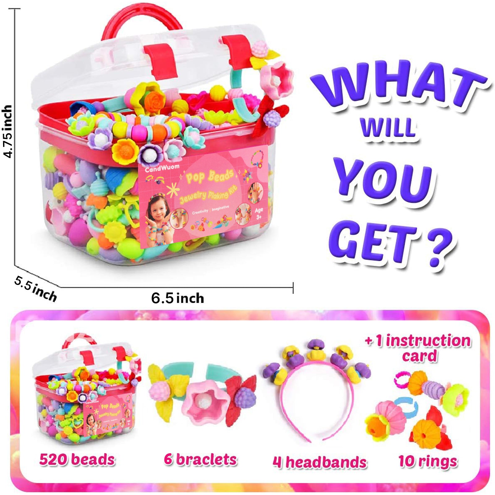 CandWuom 520+ Snap Pop Beads for Kids Jewelry Making - Toys for Girls, Arts and Crafts Supplies, Bracelet Making Crafts for Kids, Gifts for Girls Age 3-5 (RED))