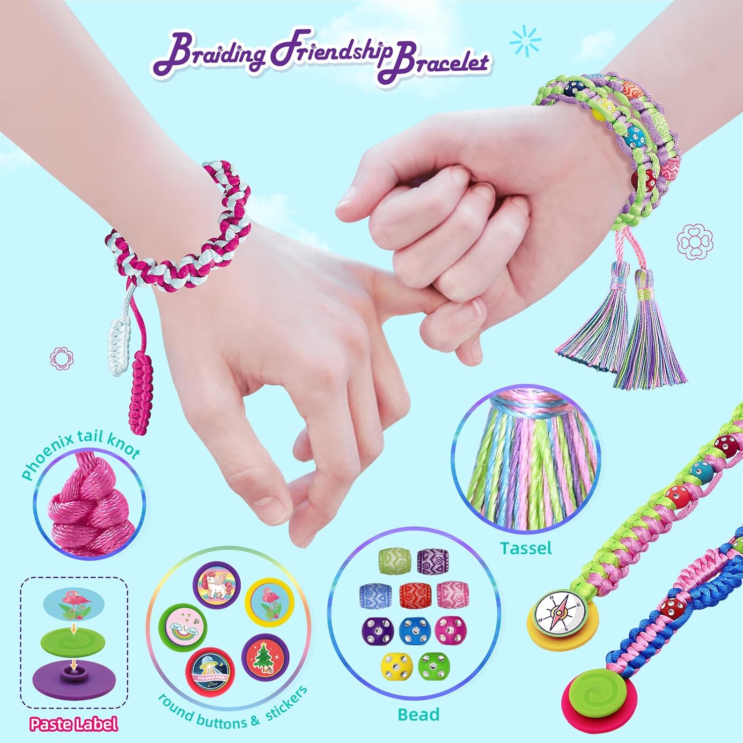 2024 Newest Upgraded Complete Crafting Kit includes everything your child needs for endless creativity. It comes with 1 gift packing box, 1 portable bracelet loom, necessary accessories and step-by-step instructions. Kids DIY on the friendship bracelet making loom and make their own unique style according to their preferences. Such as fashionable bracelets, key chains, bag pendants, hair braids in their own style to advance children interesting and hobbies of craft. Fashionable string friendship bracelet making kit is a perfect gift for girls aged 6 7 8 9 10 11 12. Different styles of bracelets for girls to wear a week without repeating.