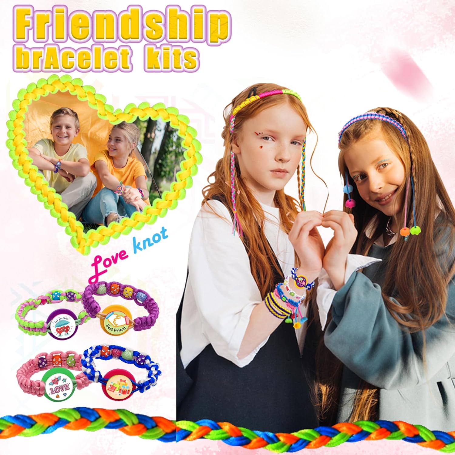 CandWuom Friendship Bracelet Making Kit, Bracelet Kit for Girls, Jewelry Bracelet Kit, Portable DIY Knitting for Kids, Best Gifts Ideas for Kids Age 7 8 9 10 11 12 Year Old (Yellow)