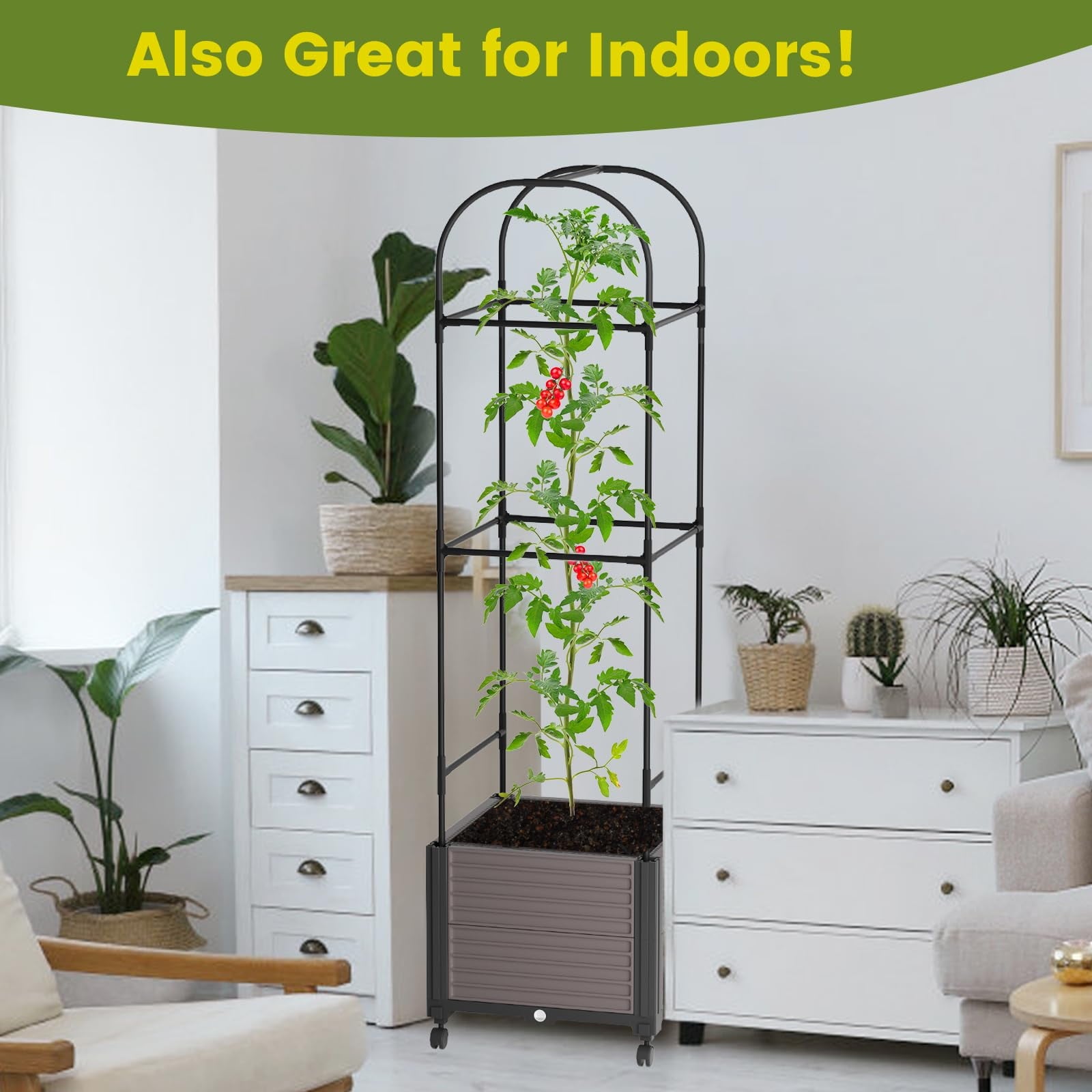 - Solid and Stable: The palnter trellis are made of polypropylene and PE plastic-coated steel tubing,which is strong, durable and fade resistant.This tomato planter with trellis has no odour and is safe to use.