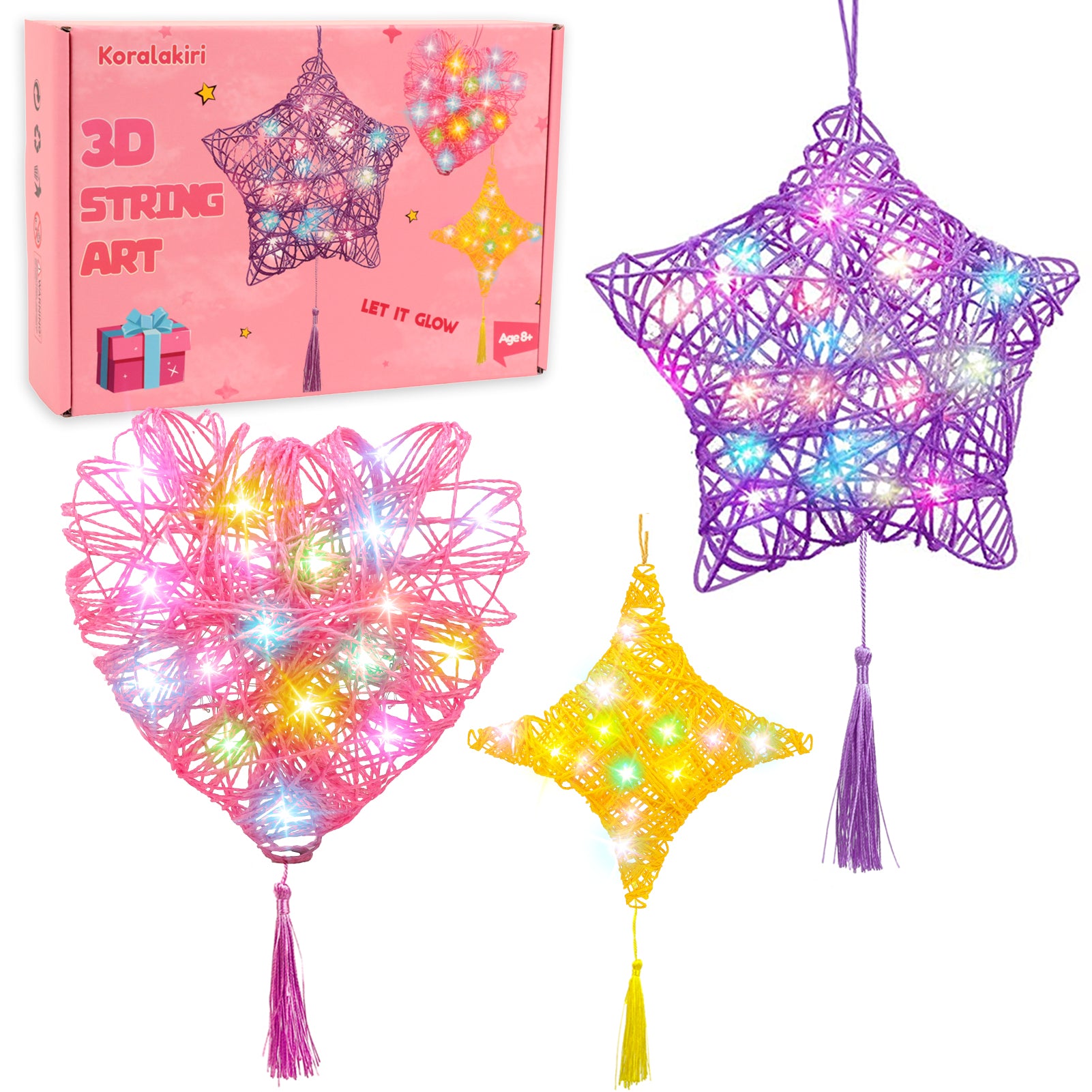 Koralakiri 3D String Arts Crafts for Girls Ages 8-12, Heart Star Diamond Lantern Toys for Girls 6 7 8 9 10 11 12 Years Old Birthday Gifts