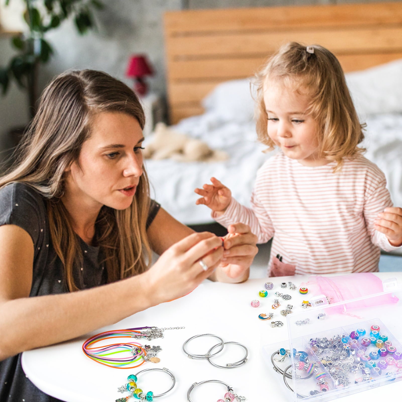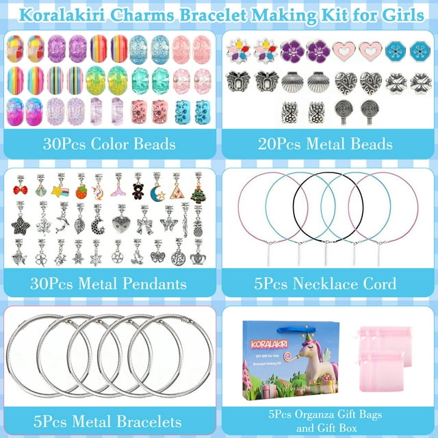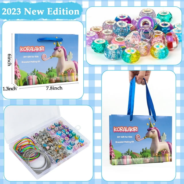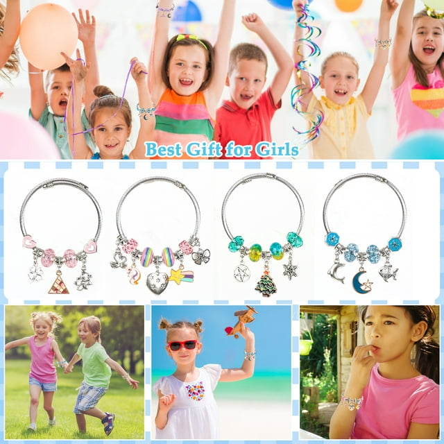 - 【Create Unique Gifts For Girls】Charms beads bracelet making kit comes with a beautiful unicorn box. Present box is an eye-catcher for your little girl. Making it a great gift for girls who like jewelry. Also, it can be an entertaining party art kit for girls ages 6-12, birthday gifts for 6 7 8 9 10 11 12 year old girls. WOW her with a beautiful DIY bracelet making kit!