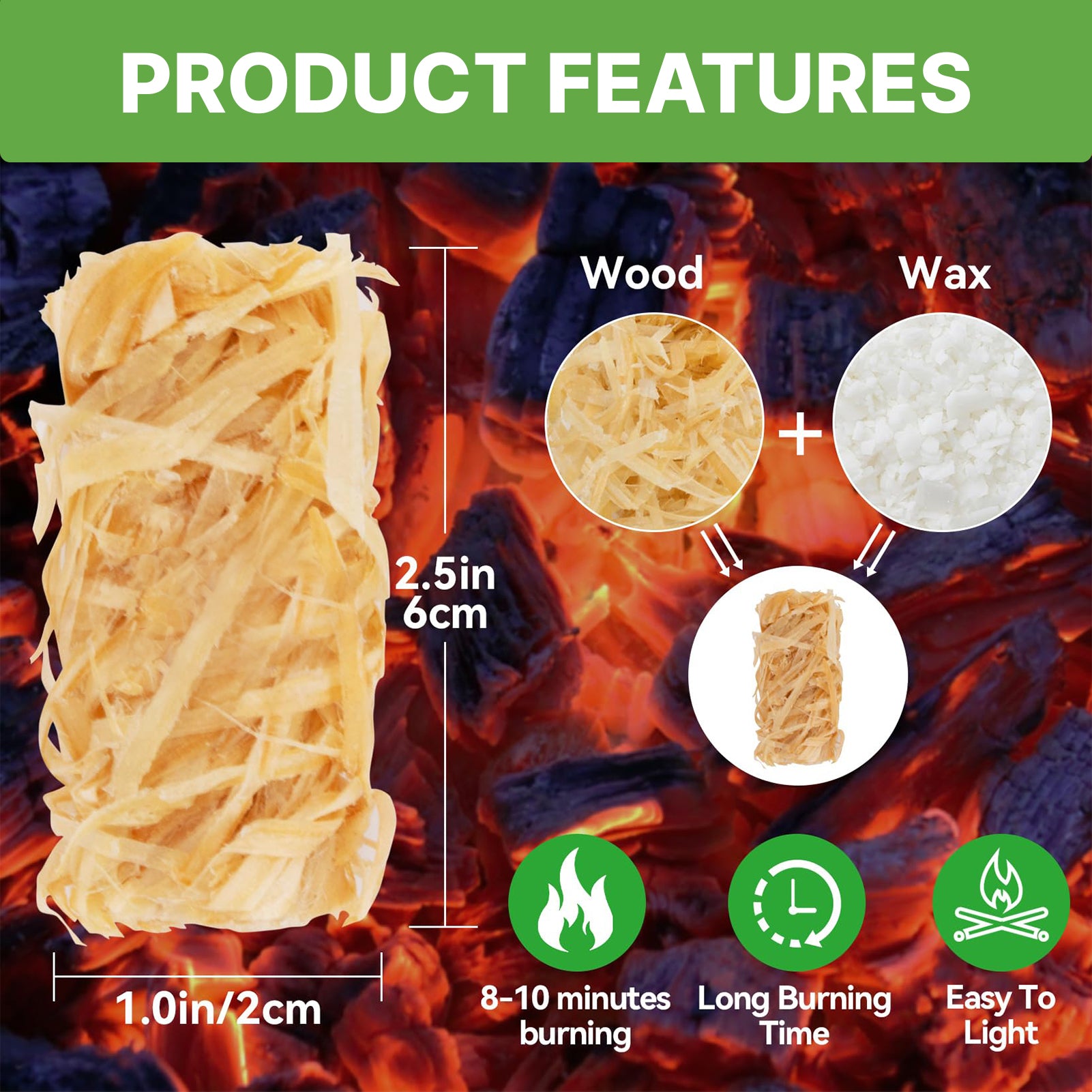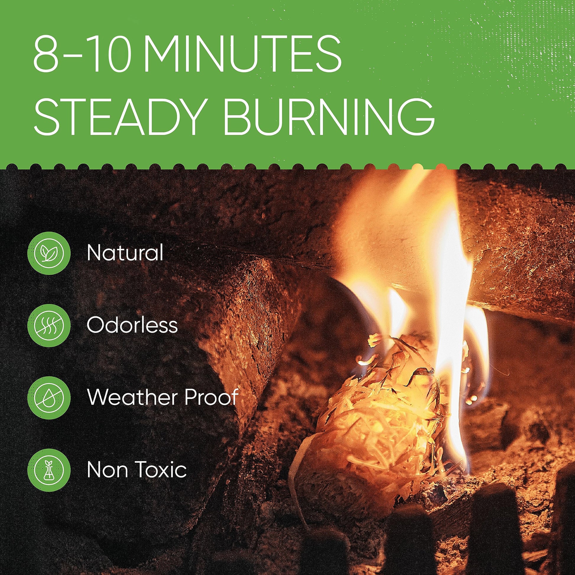 - Longer Burning: The charcoal fire starters for fireplace will start quickly because of the wood shavings and wax, 1 piece of fire lighter is enough to keep a nice flame burning for 8-10 minutes long.