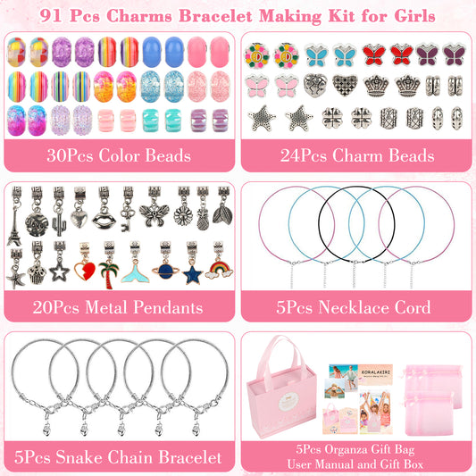 CandWuom 91 Pcs Charms Bracelets Making Kit Including Snake Chains, DIY Gift for Kids, Jewelry Making Supplies for Arts and Crafts for Teen Girls Ages 6-12