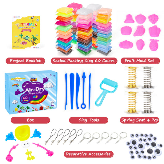 CandWuom Air Dry Clay for Kids, 60 Colors Modeling Magic Clay Kit, Soft & Ultra Light Molding Clay, Art Crafts Best Gift for Boys & Girls Age 3-12